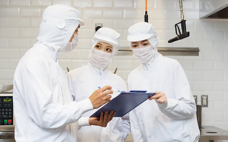 使用した器具や機械を、決められた手順で丁寧に洗浄・消毒します。衛生管理の基本となる、大切な業務のひとつです。