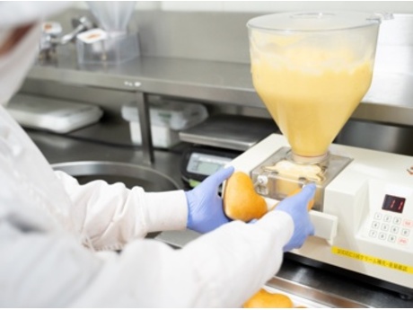 焼きあがったドーナツにクリームを入れたり